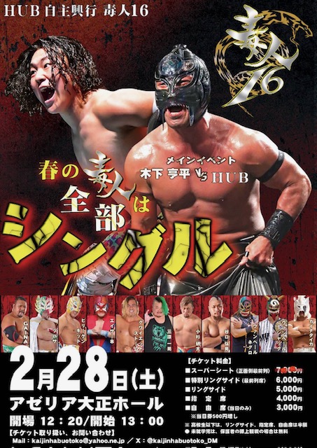 先週、HUB選手の自主興行「毒人16」に参戦してきた。